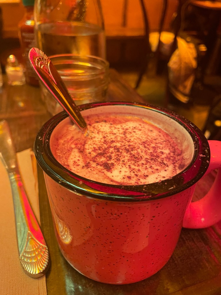 We went to one of Timothée Chalamet’s favourite coffeeshops – MUD, and it did not disappoint. I got a hot chocolate (which was very soothing after some rain) and a chocolate croissant (I’ve been on a chocolate kick since Easter).