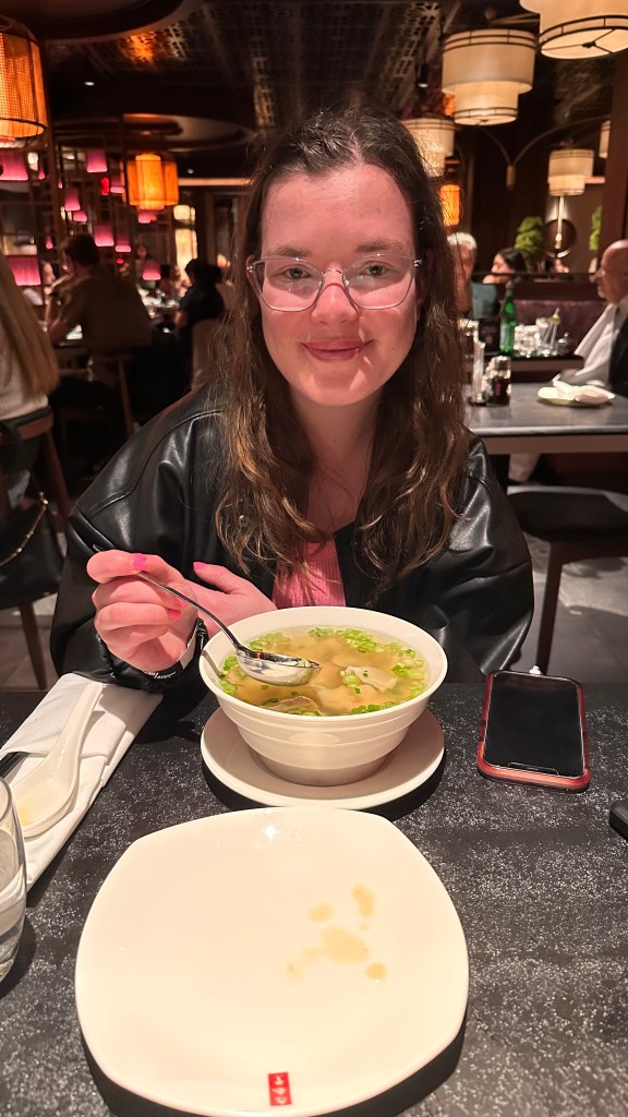 After Seth Meyers, we had a very late dinner (9:30 p.m. was the earliest reservation we could get) at Din Tai Fung. I had soup dumplings for the first time, wonton soup, and a steamed pork bun (I also had never had these before either). It was mouth-watering!